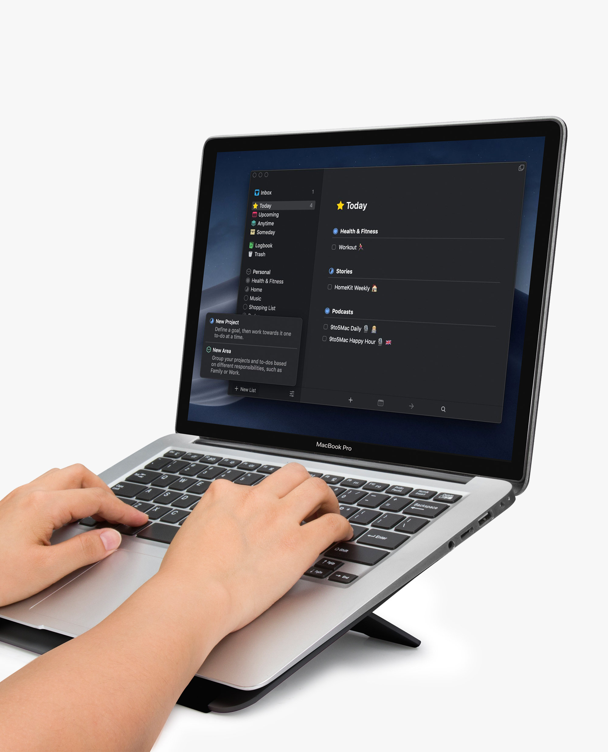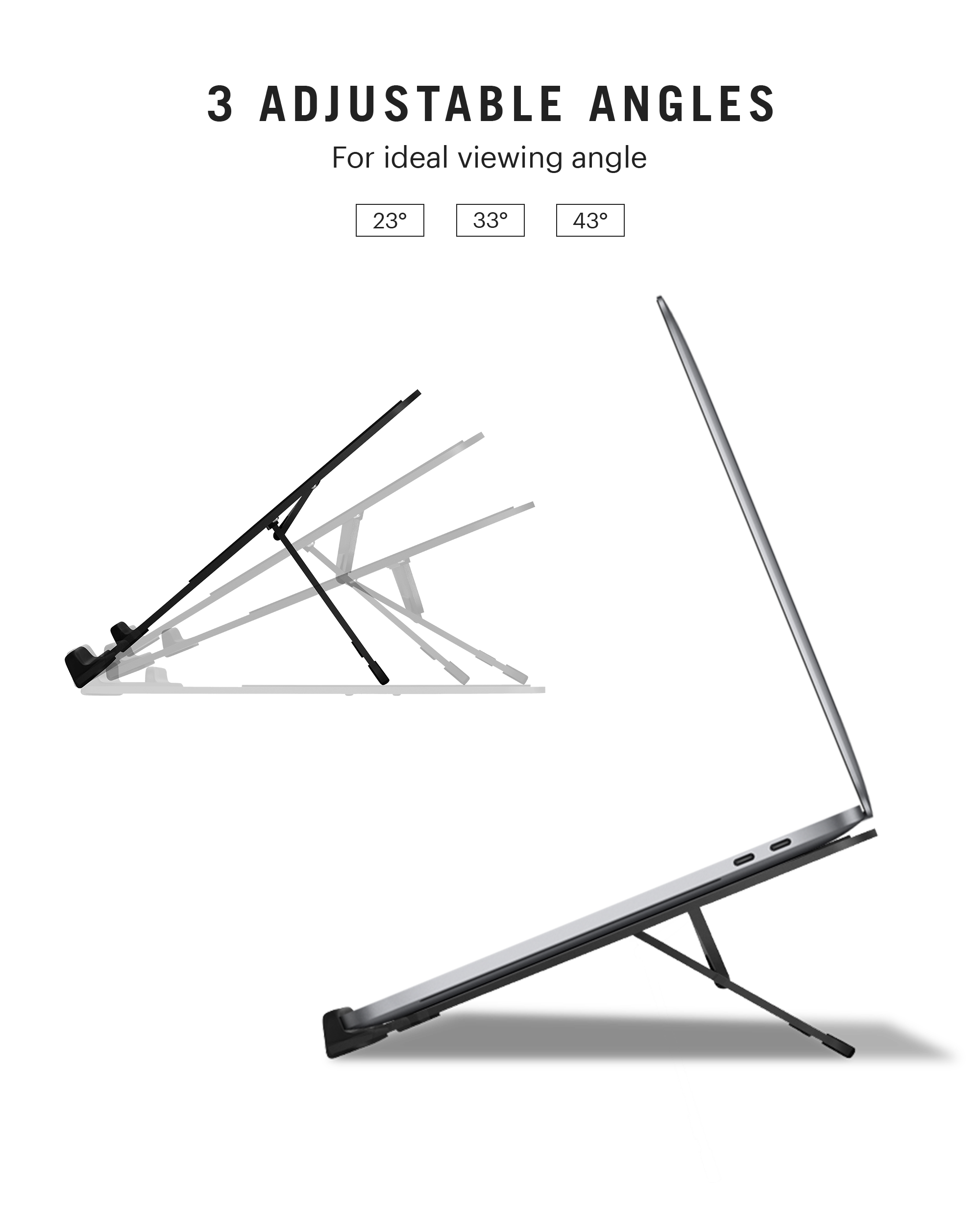 Unfold Aros, our adjustable laptop or tablet stand which supports your device in 3 inclination angles, reducing the strain on your back. The sturdy and lightweight design makes it travel friendly as well!