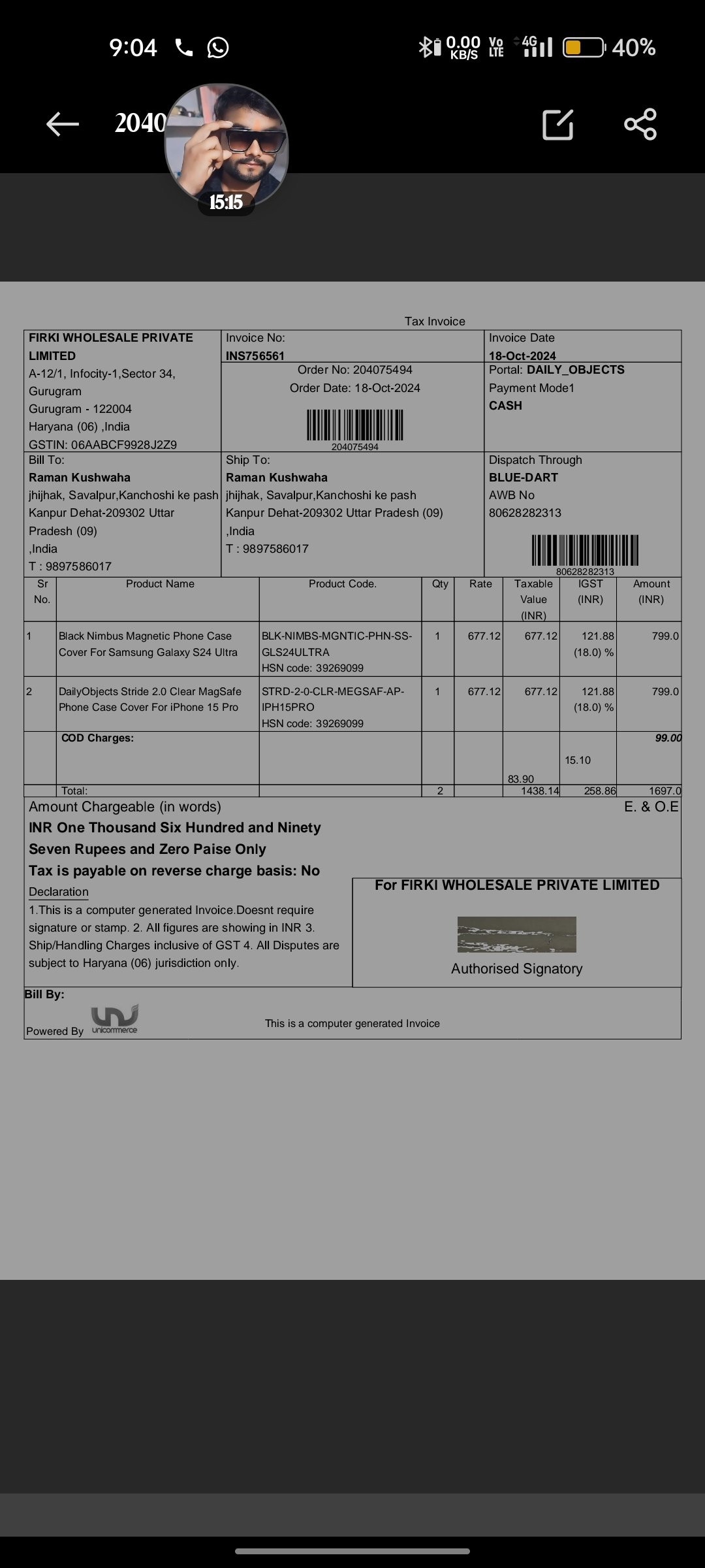 Manufacturer, Packer, and Importer name : Firki Wholesale Pvt Ltd, DailyObjects, Block-A, Property No-12/1. Industrial Colony, Infocity, Sector-34, Gurugram, Haryana, 122004