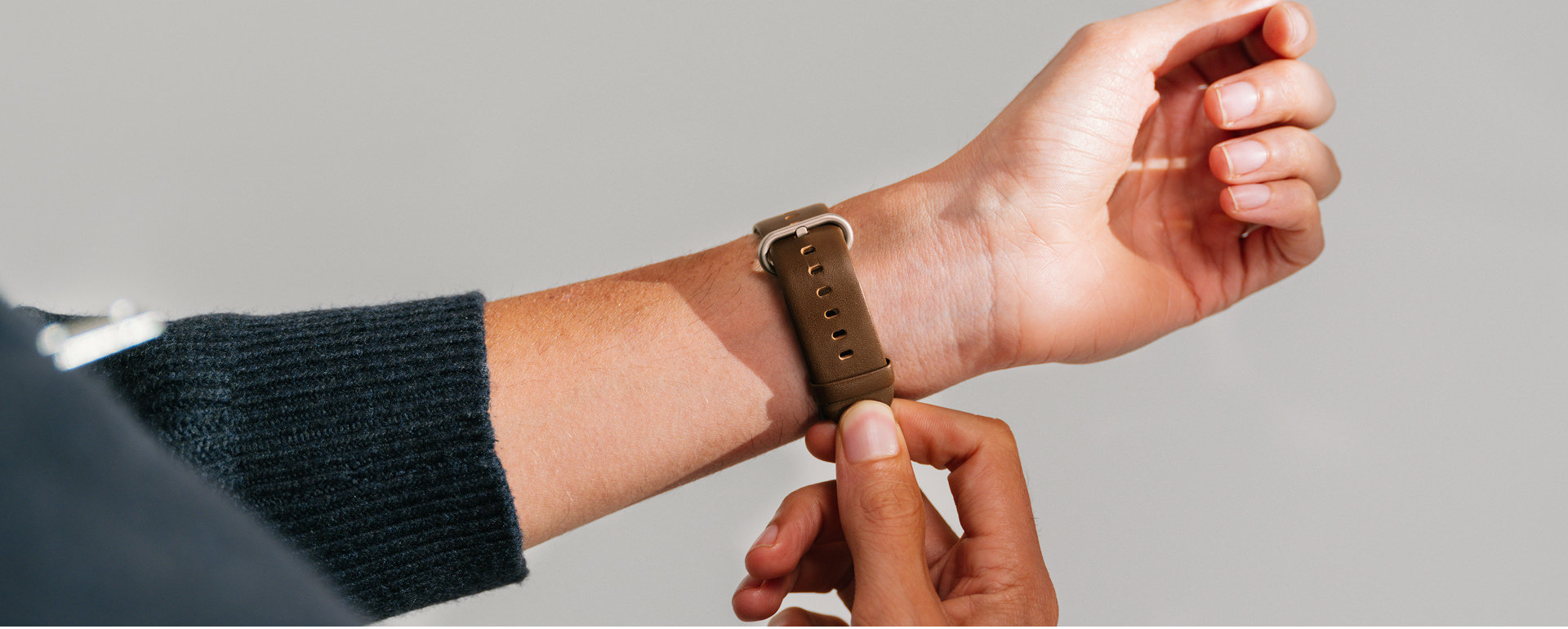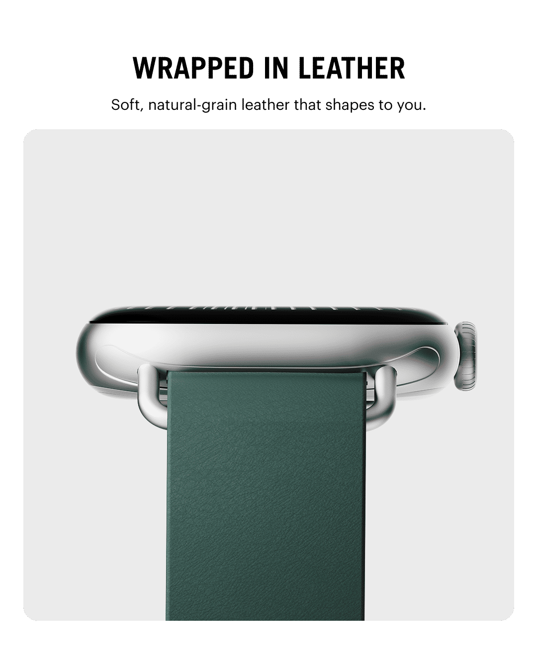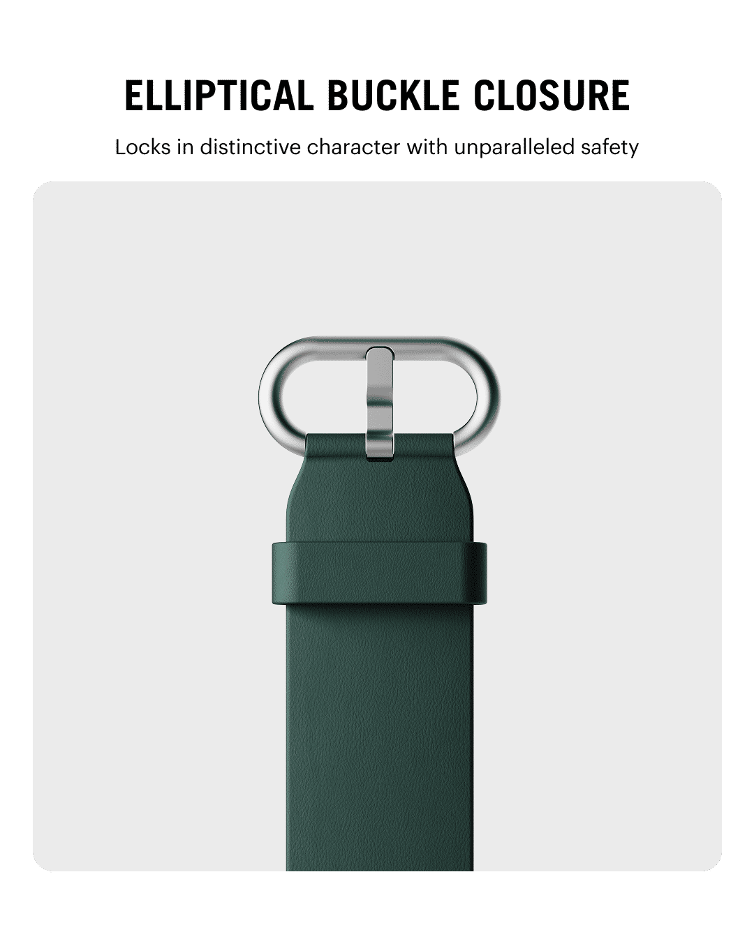 The Ellipse Apple Watch Band combines full-grain leather with sweat-resistant design for lasting comfort. Its sculpted elliptical buckle secures a precise fit, while the finish develops a rich patina over time.