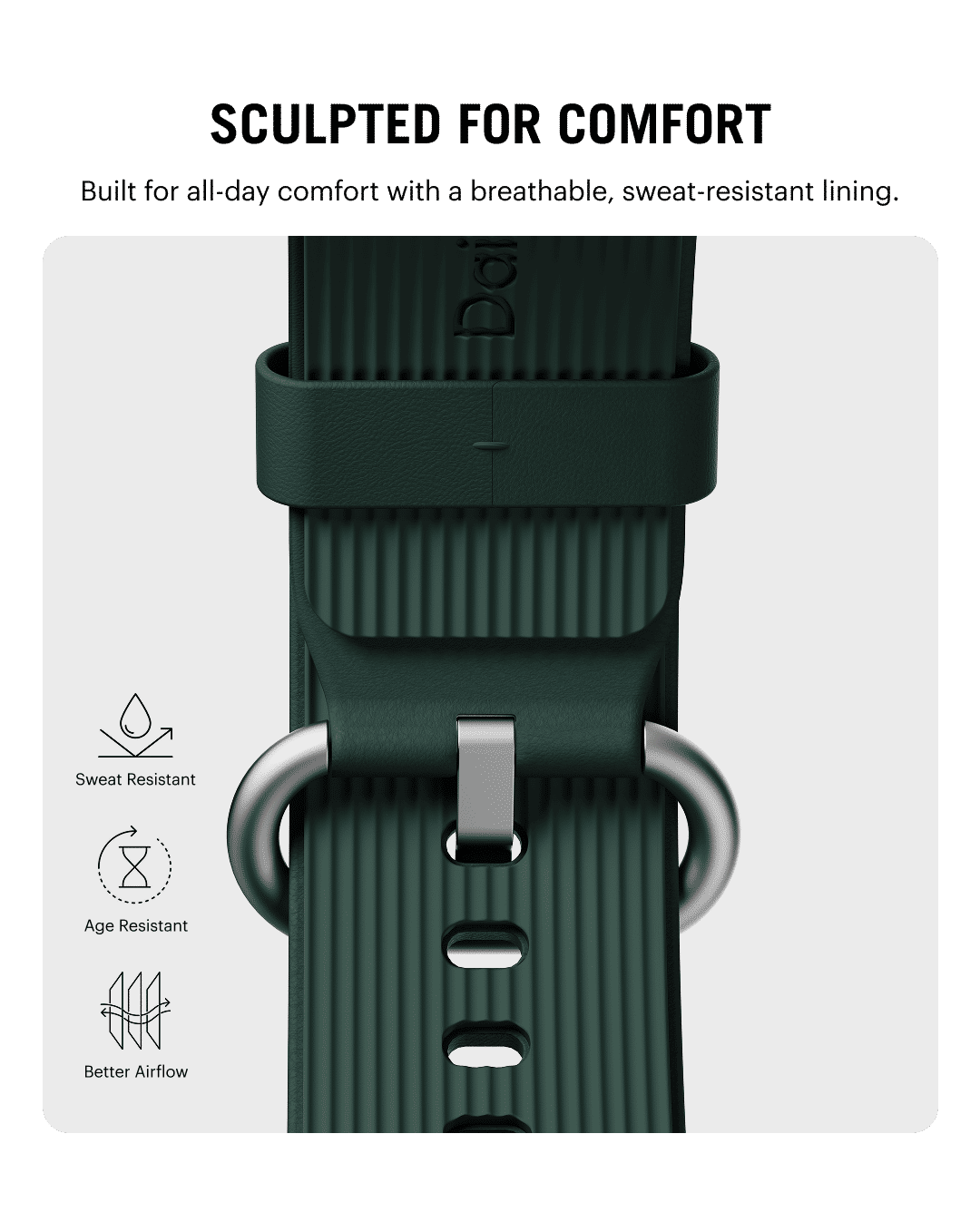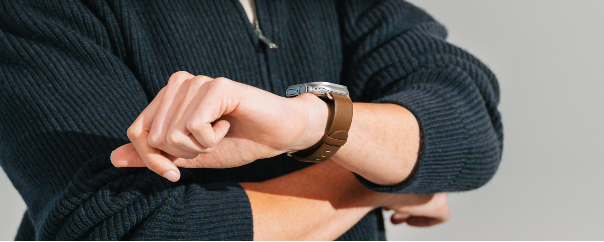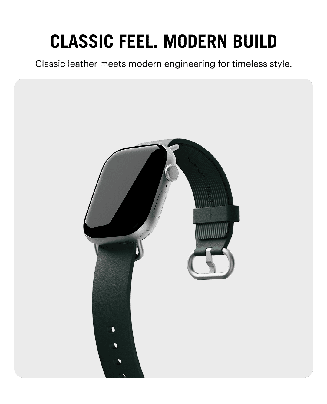 The Ellipse Apple Watch Band combines full-grain leather with sweat-resistant design for lasting comfort. Its sculpted elliptical buckle secures a precise fit, while the finish develops a rich patina over time.