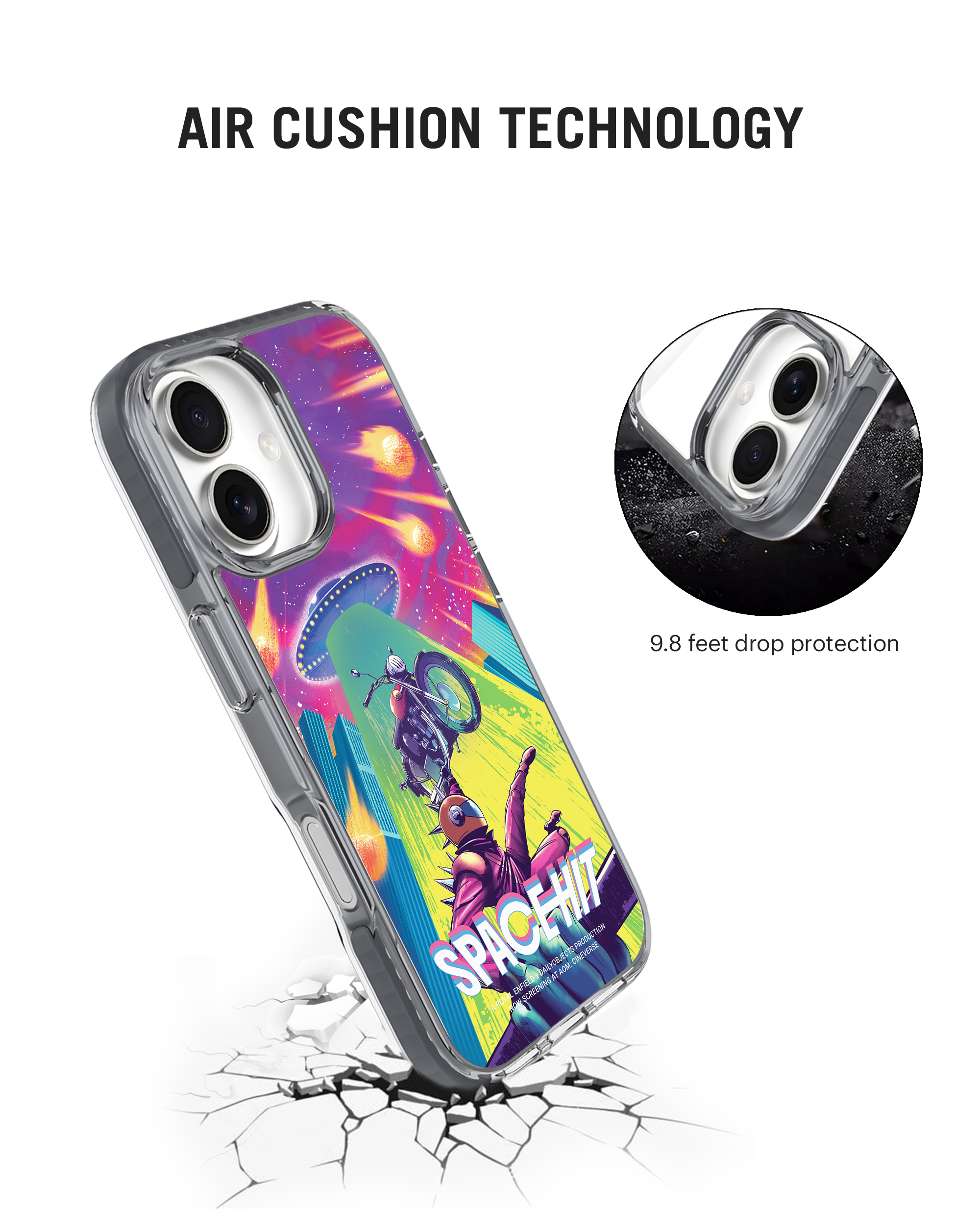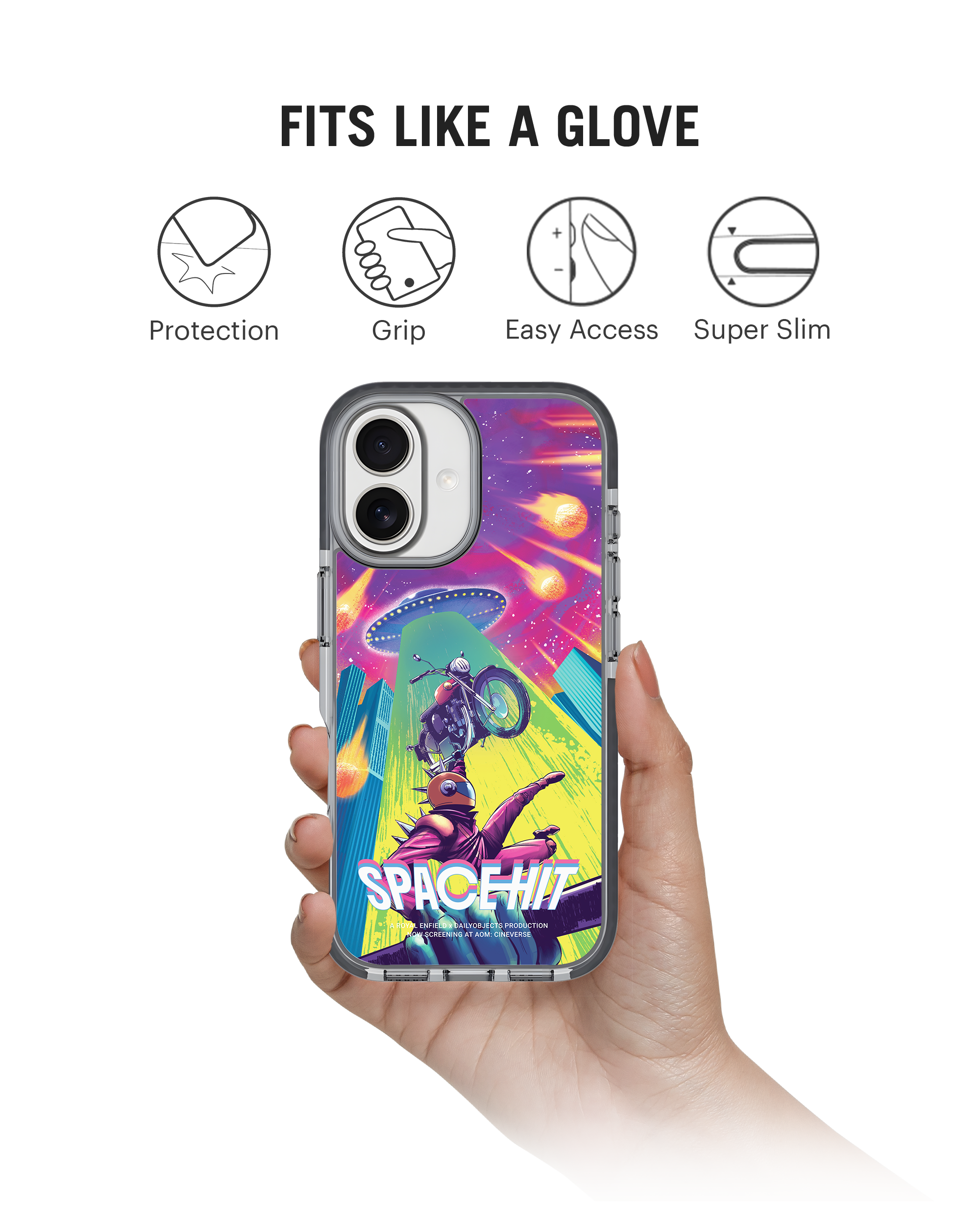 What does an alien entourage have to do with Luke’s Royal Enfield Motorcycle? Are they testing if gravity exists on their planet or are they collecting souvenirs from their intergalactic expedition? Whatever their intention may be, Luke is not letting go of his prized possession without a fight in the Space Hit Stride 3.0 Phone Case.