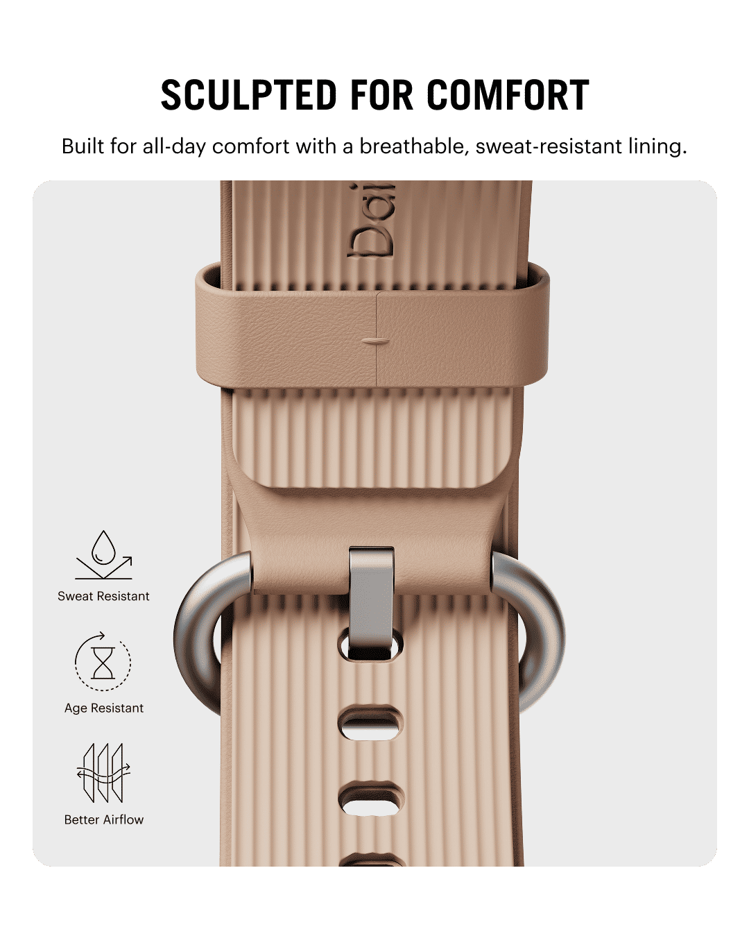 The Ellipse Apple Watch Band combines full-grain leather with sweat-resistant design for lasting comfort. Its sculpted elliptical buckle secures a precise fit, while the finish develops a rich patina over time.