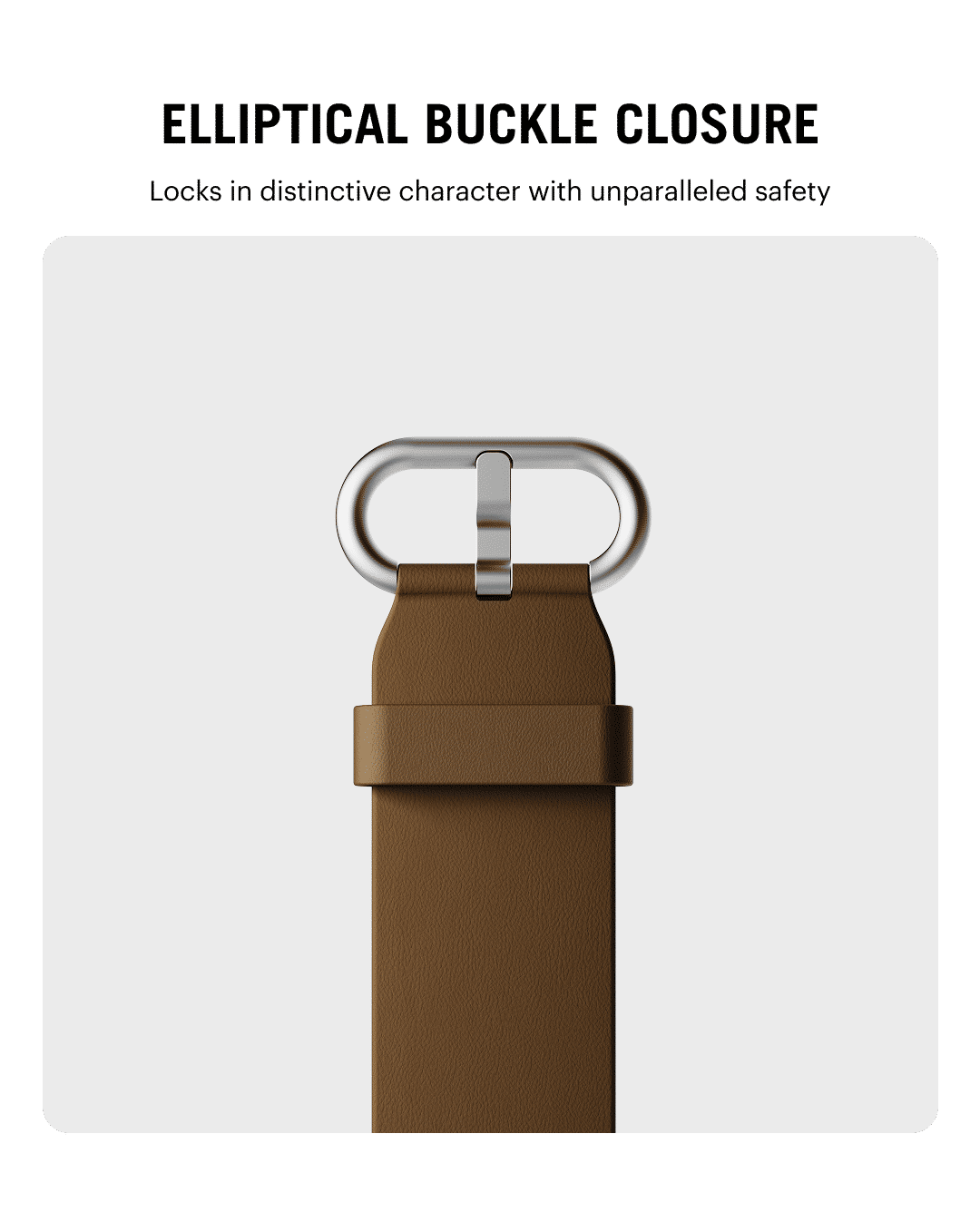 The Ellipse Apple Watch Band combines full-grain leather with sweat-resistant design for lasting comfort. Its sculpted elliptical buckle secures a precise fit, while the finish develops a rich patina over time.